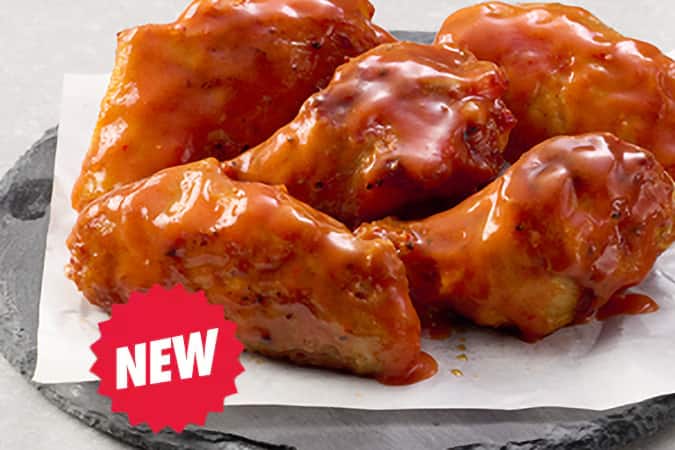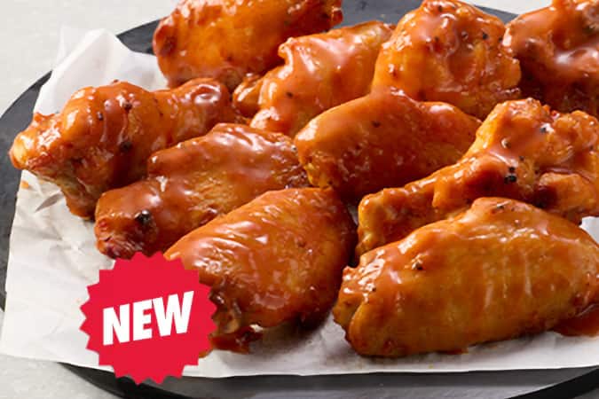 Oven-roasted seasoned chicken wings, coated with your choice of ...