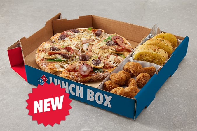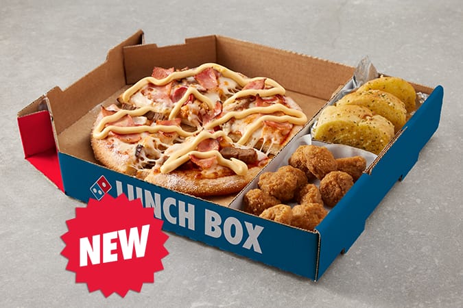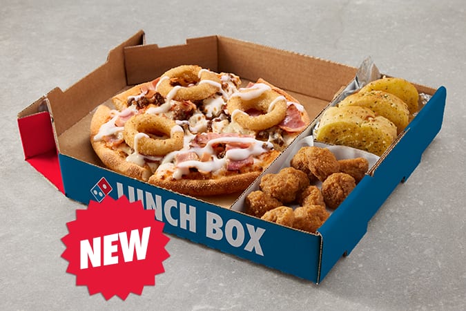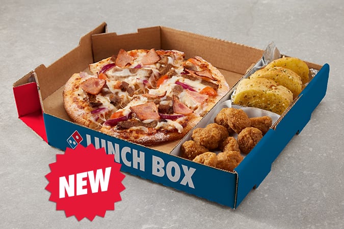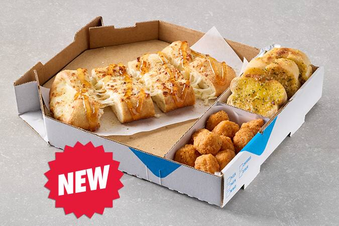 Enjoy a Mini Mega Meatlovers pizza, Mini Garlic Bread and 10 Sou...