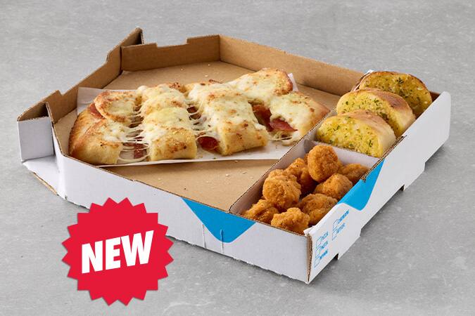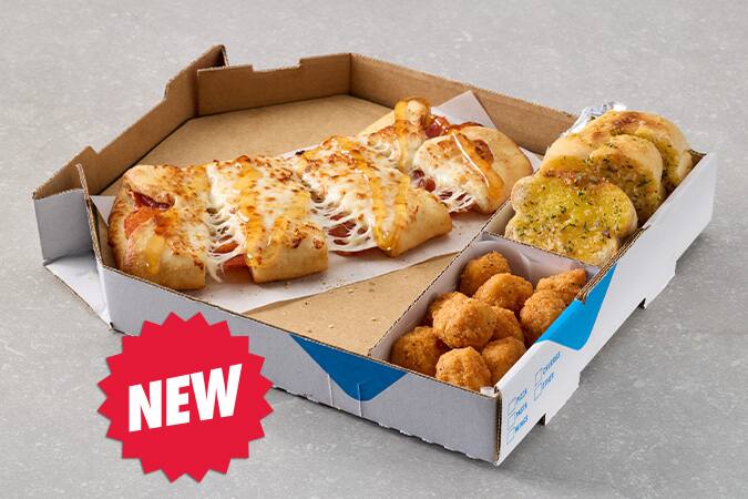 Enjoy a Mini Cheese Deluxe pizza, Mini Garlic Bread and 10 South...