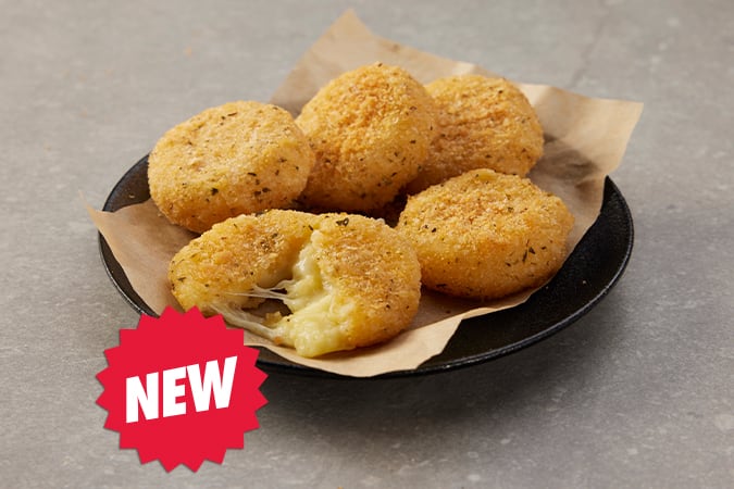 5 golden crispy crumbed cheese bites filled with a delicious che...
