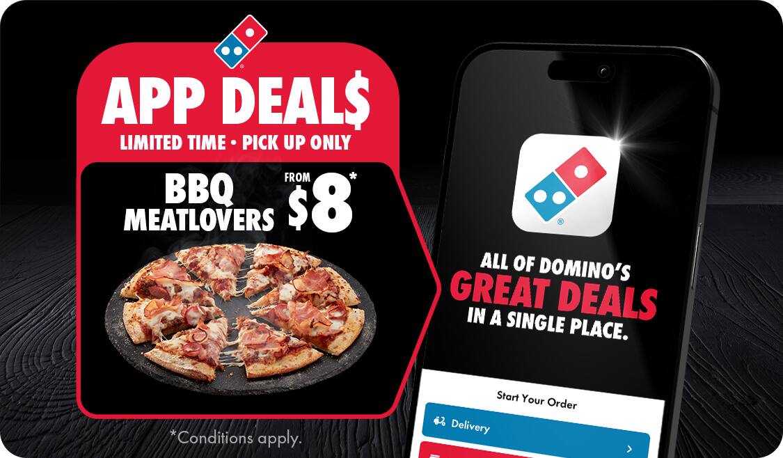 *Conditions apply. Deal includes Large Value Range pizzas and Garlic Bread or 1.25L drink varieties as sides. Customisation may incur additional charges. Can be upgraded for additional costs. Offer available online at participating stores. 10% surcharge on Sundays and after 10pm. Up to 20% surcharge on public holidays. Minimum delivery order up to $22.90.