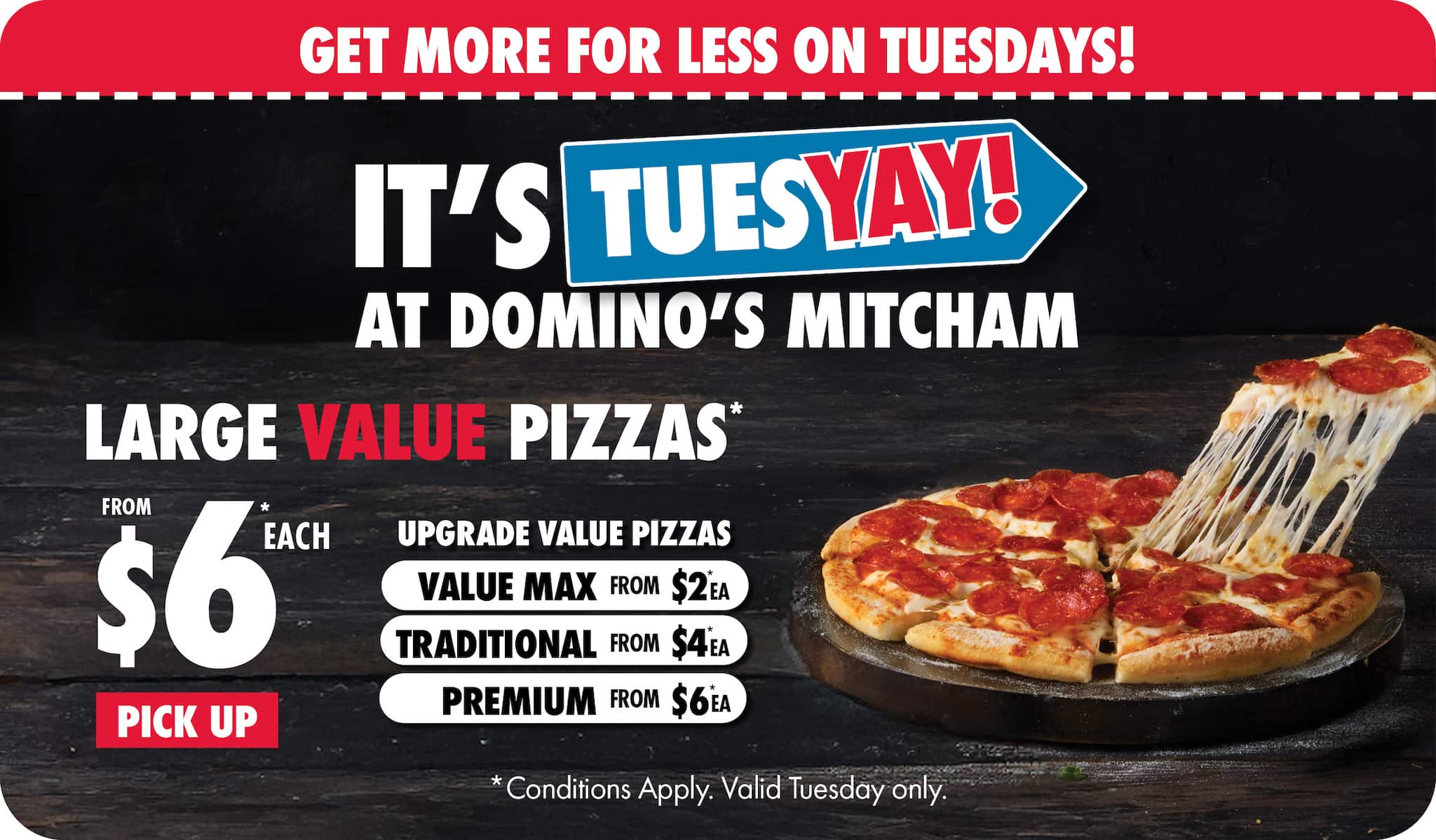 *10% surcharge applies on Sundays and after 10pm in selected stores. Surcharge of up to 20% applies on Public Holidays. Minimum delivery order $22.90 (excluding extended delivery, after 10pm, Sunday, and Public Holiday surcharges). Additional charges apply for extra toppings, half 'n' half & indulgent crusts. Limited area for delivery. For full terms and conditions click here.