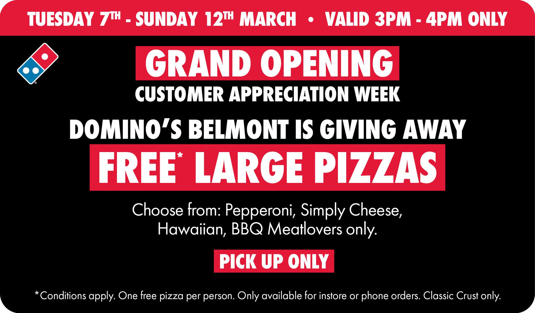 *10% surcharge applies on Sundays and after 10pm in selected stores. Surcharge of up to 20% applies on Public Holidays. Minimum delivery order $22.90 (excluding extended delivery, after 10pm, Sunday, and Public Holiday surcharges). Additional charges apply for extra toppings, half 'n' half & indulgent crusts. Limited area for delivery. For full terms and conditions click here.