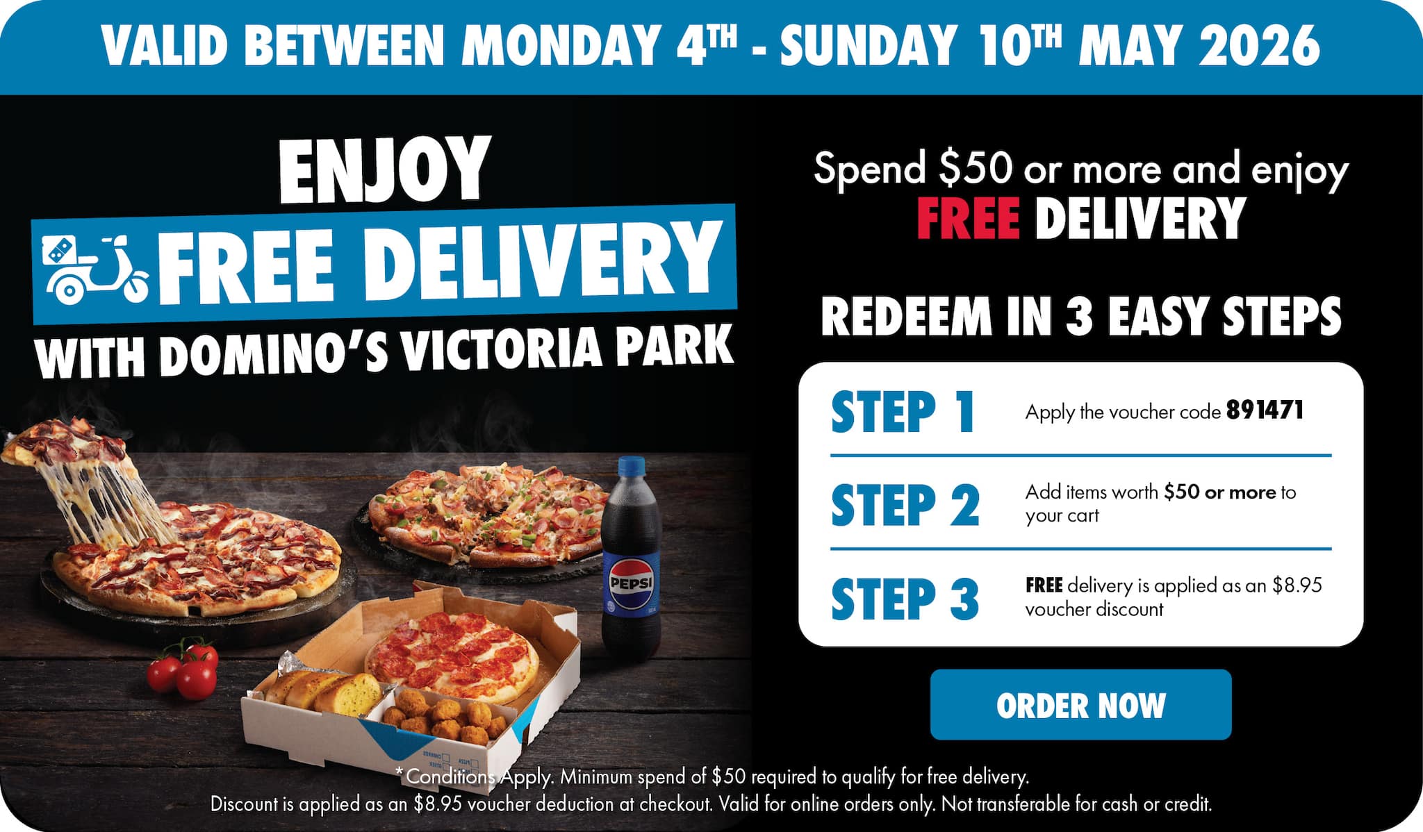 ORDER delivery NOW*Conditions apply. Valid only until 10/05/2026. Minimum delivery spend $50 required to qualify for free delivery.