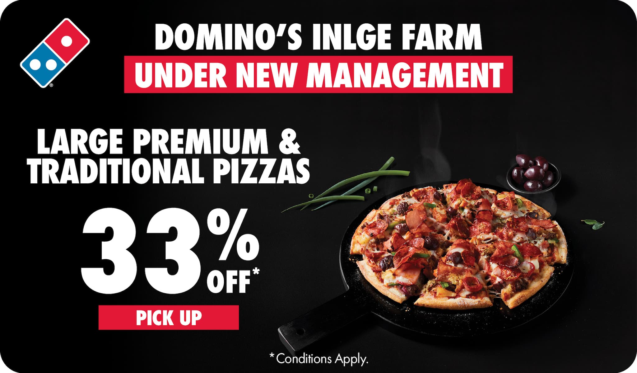 *10% surcharge applies on Sundays and after 10pm in selected stores. Surcharge of up to 20% applies on Public Holidays. Minimum delivery order $22.90 (excluding extended delivery, after 10pm, Sunday, and Public Holiday surcharges). Additional charges apply for extra toppings, half 'n' half & indulgent crusts. Limited area for delivery. For full terms and conditions click here.