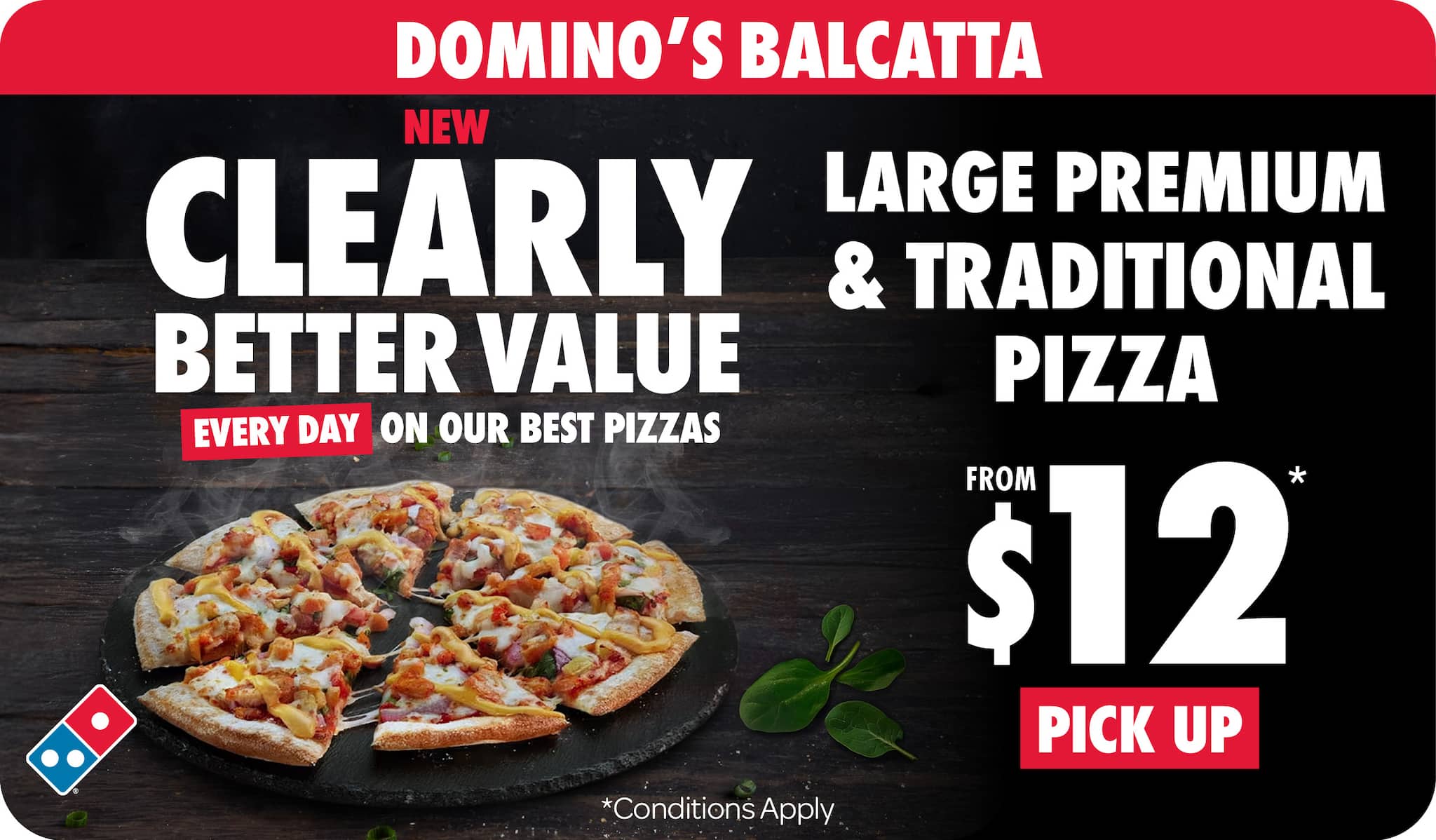 ORDER pick up NOW*Conditions apply. Valid until 18/01/2026. Price of $12* per pizza pick up.