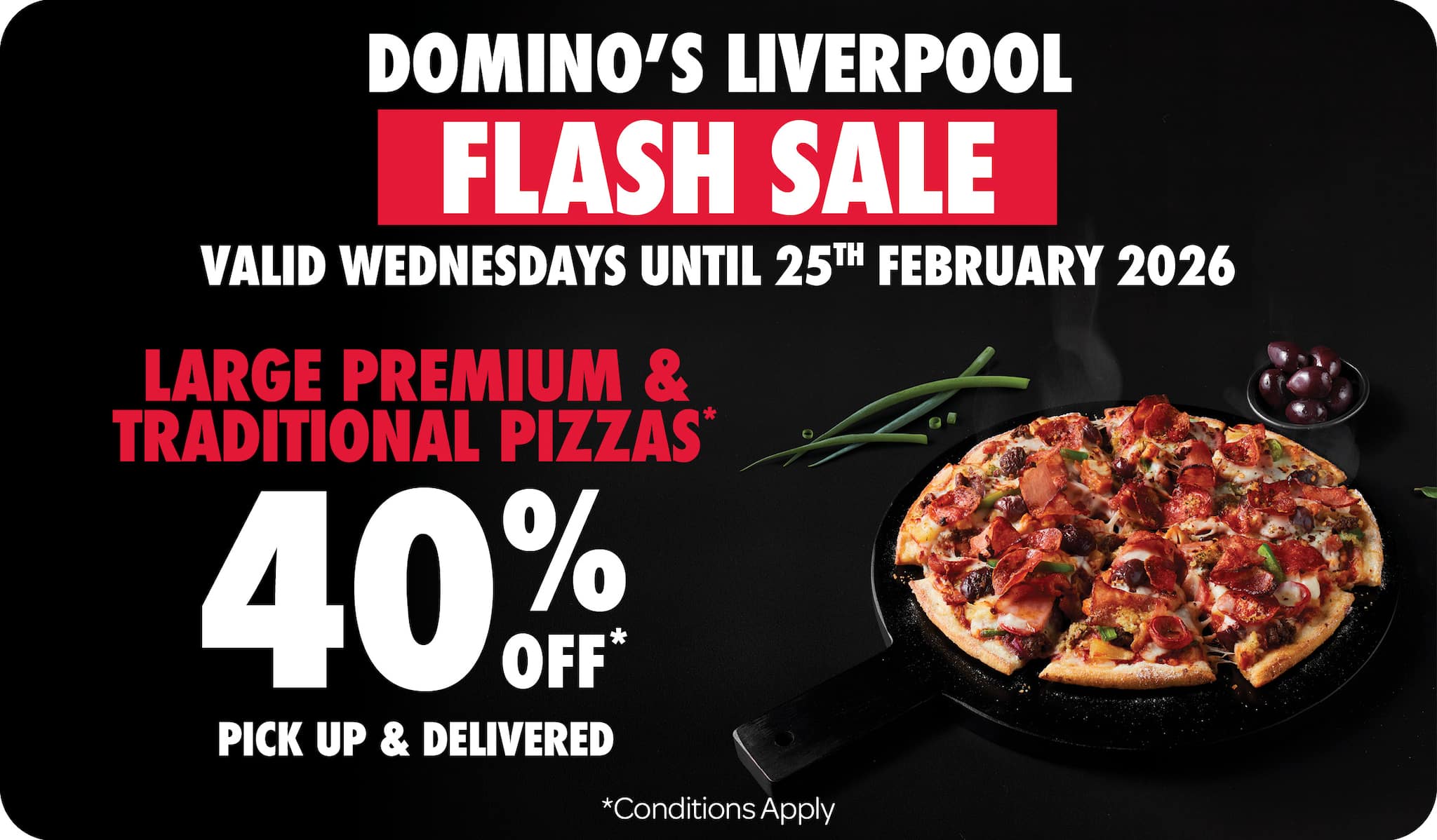 *10% surcharge applies on Sundays and after 10pm in selected stores. Surcharge of up to 20% applies on Public Holidays. Minimum delivery order $22.90 (excluding extended delivery, after 10pm, Sunday, and Public Holiday surcharges). Additional charges apply for extra toppings, half 'n' half & indulgent crusts. Limited area for delivery. For full terms and conditions click here.