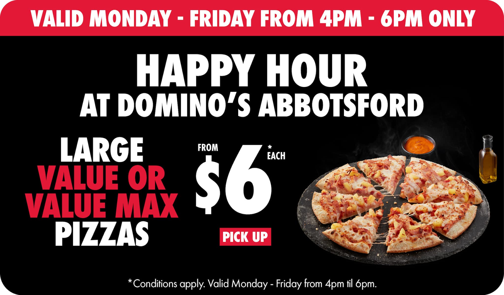 *10% surcharge applies on Sundays and after 10pm in selected stores. Surcharge of up to 20% applies on Public Holidays. Minimum delivery order $22.90 (excluding extended delivery, after 10pm, Sunday, and Public Holiday surcharges). Additional charges apply for extra toppings, half 'n' half & indulgent crusts. Limited area for delivery. For full terms and conditions click here.