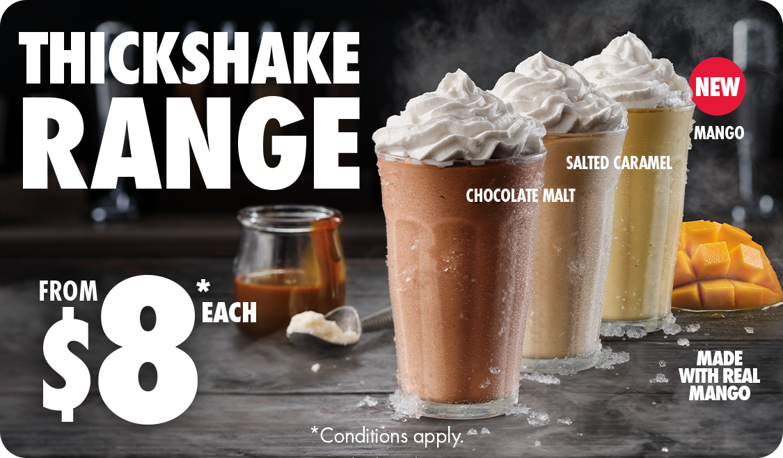 *Skip the Queue priority order service available for online orders only. Skip the Queue not available for pre-timed orders or UberEats, Menulog or DoorDash orders. $4 service fee applies to Skip the Queue delivery orders and $3 service fee applies to Skip the Queue pick up orders (subject to change).