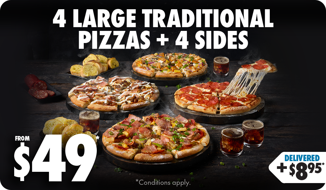 4 Large Traditional Pizzas + 4 Sides from $49.00*